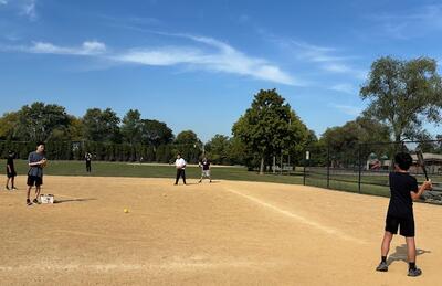 中学部の子どもたちが、青空の下、ソフトボールをしていました🏏