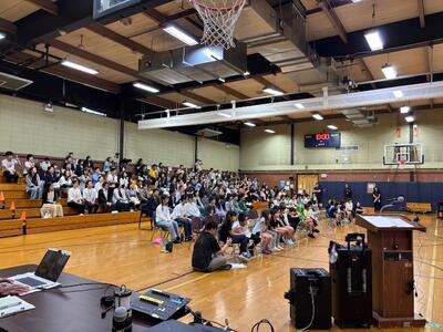 今日は初めて英語部が体育館で双葉フェスティバルの練習をしました。