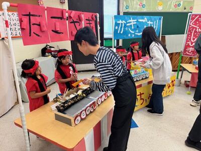 すみれ幼稚園のお店やさん(屋台)に招待してもらいました。