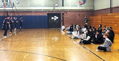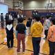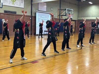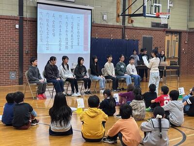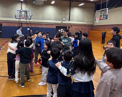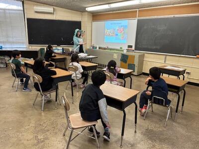 Addams JHの生徒と交流します。探究の発表会のほか、書道や着付け体験、すごろくやコマ回し、「だるまさんが転んだ」などを行う予定です。楽しい時間になりそうです。