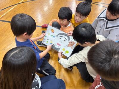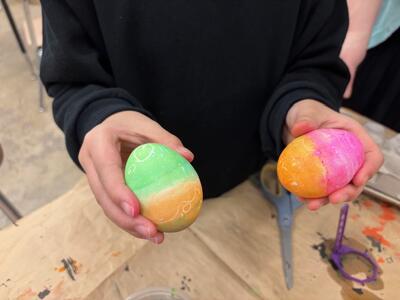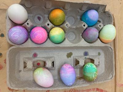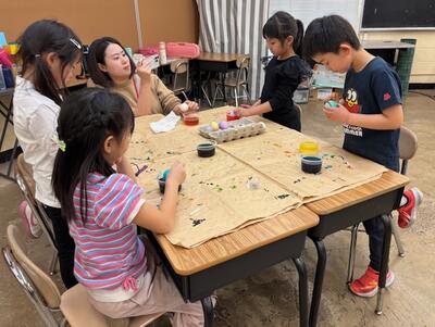 ゆで卵に色や模様を付けて、最後にイースターについての話を聞きました。