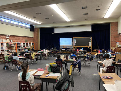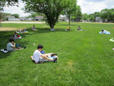 5月26日は国語と算数の学力テストでした。40分間のテスト時間の中で10ページ以上ある問題を解いていきます。読む量の多さに苦戦しながらも、終わってみると「全部できた!」「あと1問だった。」などの感想が聞こえ、集中して取り組んだことがうかがえました。その後の外でのランチと昼休みはのびのびとお弁当を食べて、遊ぶことができました。鬼ごっこをしたり倒立練習をしたり、外の空気がいちだんと気持ちの良い時間でした。