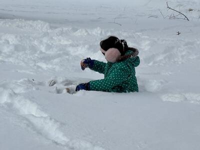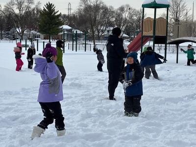 子どもたちは中休みや昼休みに雪遊びを楽しんでいました。