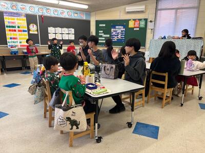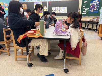 いるか組と中3のランチ交流 投稿: シカゴ双葉会日本語学校全日校 (04:41) 今日はいるか組と中3のランチ交流がありました。 中3の生徒から「蒸しパン」のプレゼントもありました。 笑顔あふれる楽しいランチタイムになりました。