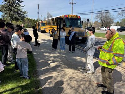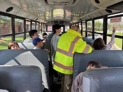 スクールバス避難訓練 投稿: 教頭 (04/21) 昨日はスクールバスでの非常事態に備えた避難訓練を行いました。 前方からの降り方だけでなく、後方から降りる練習も行いました。 スクールバスには通常職員が乗っていないため、誰かがドライバーの指示を英語で聞き取り、周りに伝える必要があります。今回は、各バスで中学生が上手に通訳をしてくれていました。